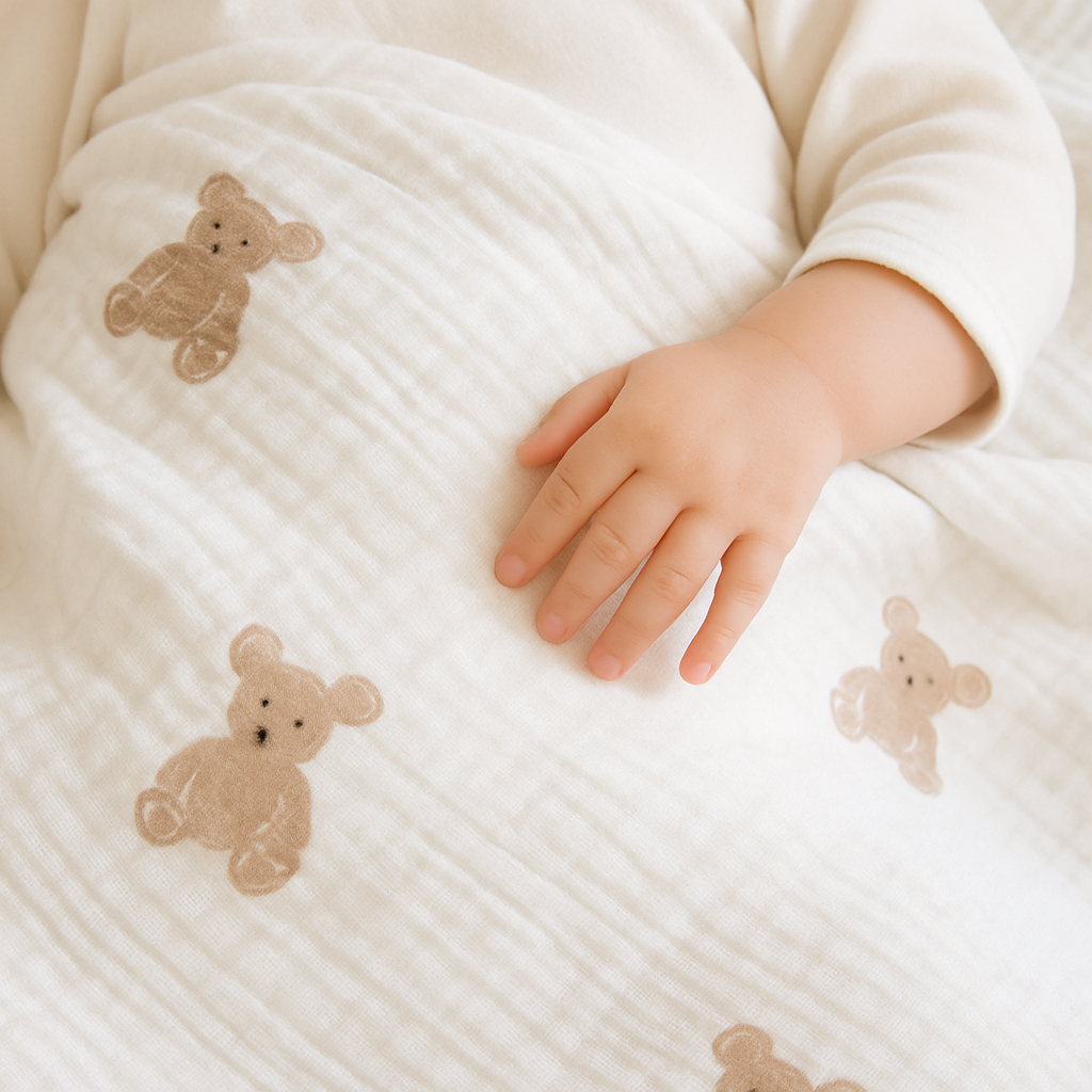 Our 100% cotton muslin blanket feels like a warm embrace for your baby. The breathable fabric prevents overheating while keeping your little one snug—perfect for year-round comfort. Ideal for newborns, but still wonderfully soft for toddlers too.