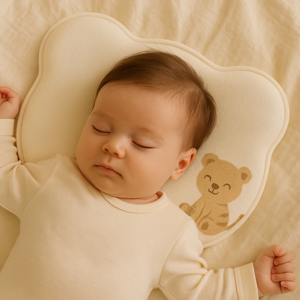 Our Bear-Shaped Baby Pillow is crafted to gently support your baby’s head and neck. The contoured design helps reduce pressure and prevent flat head syndrome—so you can rest easy knowing your baby is resting safely.